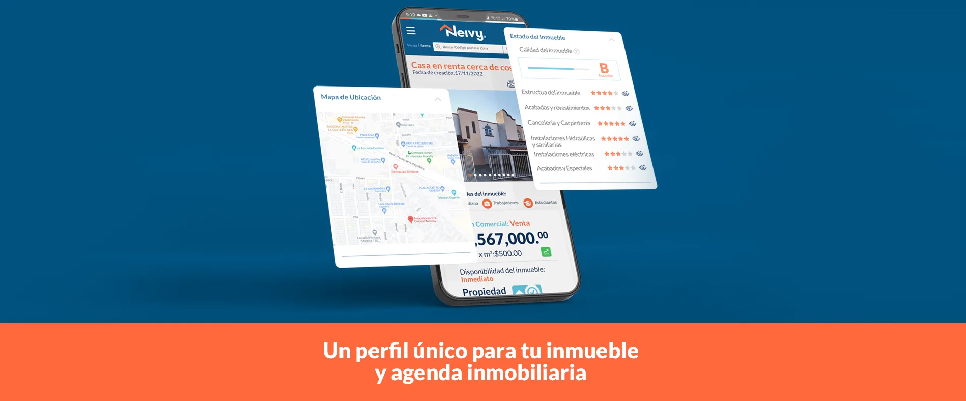 Así como tú tienes tu perfil, vas a poder crear el perfil único de tu inmueble, Neivy te ofrece la gestión completa de tus inmuebles en un solo lugar, al dar de alta un inmueble solo con llenar un pequeño formulario, se le asignará un ID único para que toda la información referente al inmueble sea recopilada en un mismo lugar, con su agenda tendrás organizado y dar seguimiento a cada uno de tus inmuebles citas, notificaciones y más...